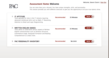 PAC quickly established itself with a set of technical aptitude and knowledge tests served through a PHP based platform wrapped around a third party test engine.